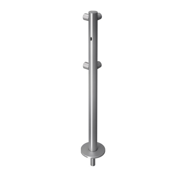 Стойка ограждения с отверстием под фиксатор 2 муфты L-образная, 2 муфты справа угол 90° передвижная