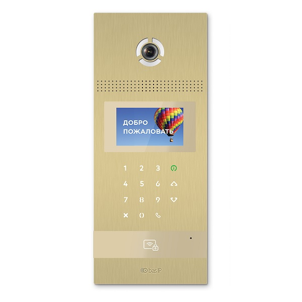 Вызывная видеопанель многоабонентская. Цветная IP камера 1.3 Мп. Угол обзора 120°. 4,3“ TFT экран с подсветкой и подогревом. Встроенное реле. Поддержка технологии "Ukey": считывание карт и брелоков и мобильных идентификаторов по стандартам EM-Marin, Mifare® Plus и Mifare® Classic, Bluetooth, NFC. Идентификация по распознаванию лиц - 6000 лиц .Память до 10 000 идентификаторов или карт . Степень защиты IP65. Температурный режим: -40 до + 65 °C. Врезной монтаж. Питание + 12 В. Поддержка SIP P2P, Выход Wiegand 26, 32, 34, 37, 40, 42, 56, 58, 64 бит, NFC, Bluetooth, RS485. Пьезоэлектрические кнопки.Цвет - золотой. Гарантия - 5 лет. Датчик приближения.