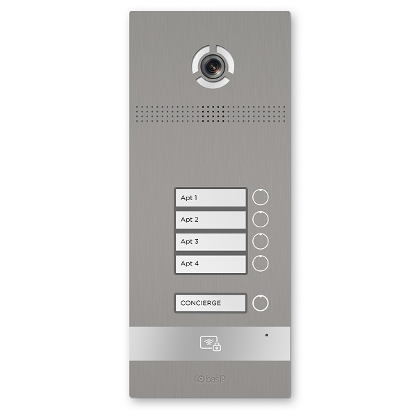 Вызывная панель на 4 абонента. Поддержка технологии "Ukey": считывание карт и брелоков и мобильных идентификаторов по стандартам EM-Marin, Mifare® Plu...
