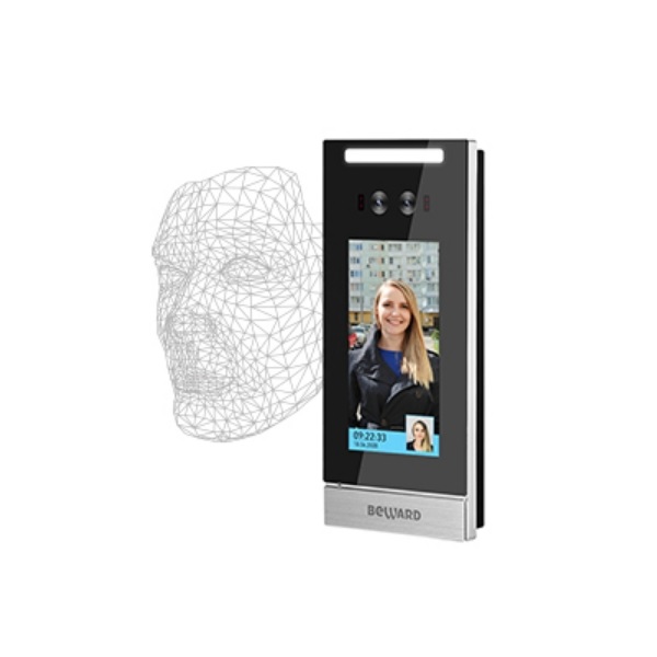 IP-терминал с диагональю экрана 5" дисплей, две 2 Мп камеры КМОП 1/2.8" SONY Starvis, 0.01 лк (день) / 0.001 лк (ночь), H.265/Н.264/MJPEG, 1920x1080, до 25 к/с, IP54, 12 В, распознавание лиц (до 10 000 пользователей), подключение считывателя по wiegand, двухфакторная идентификация, светодиодная подсветка