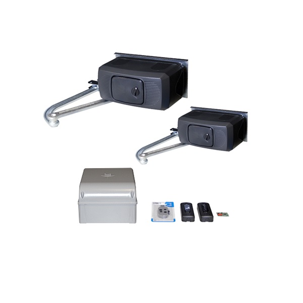 До 800кг или до 4,0м интенсивность 30%. Состав комплекта: 001F1000 F1000 - Привод 230 В рычажный самоблокирующийся с шарнирным рычагом передачи 2. 002ZF1N ZF1N - Блок управления 1. 001AF43S AF43S - Плата-радиоприемник 433.92 МГц 1. 806TS-0130 TOP44RGR - Брелок-передатчик 4-х канальный с динамическим кодом 1. 001DIR10 DIR10 - Фотоэлементы / передатчик, приемник / накладные, дальность 10 м 1