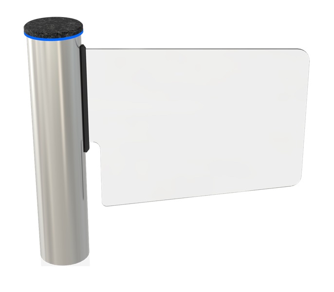 Турникет-калитка моторизованная WING GL со створкой из закаленного стекла 900 мм. Мин. ширина проема (мм): 1250. Время открывания на 90° (с): 2.5. Интенсивность использования (%): интенсивное. Класс защиты (IP): 44. Напряжение электропитания (В, 50 Гц): 230. Напряжение электропитания двигателя (В): 24. Потребляемая мощность (Вт): 65. Диапазон рабочих температур (°C): -20 ÷ +68