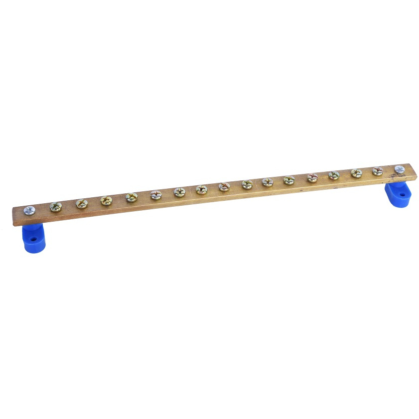 Панель заземления длинной 300 мм., из латунной шины сечением 5х15 мм с нагрузочной способностью 200А, 15 точек подключения с винтами М5.