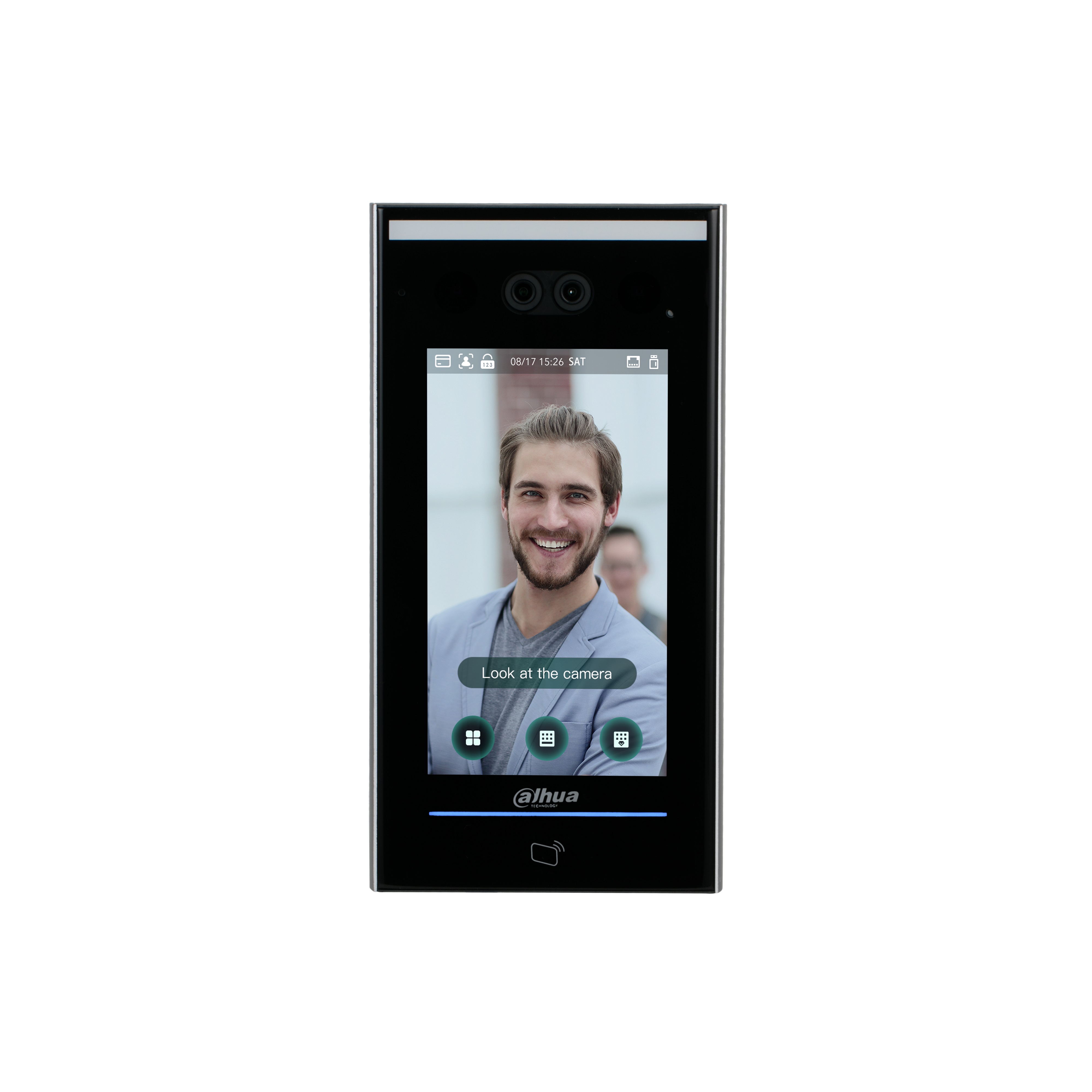 AI терминал учета рабочего времени и контроля доступа с распознаванием лиц; В устройстве применяется алгоритм распознавания лиц глубинного обучения. Доступ: распознавание лица, IC-карта, пароль и их комбинации; также поддерживается открытие замка в определенные интервалы времени. Сенсорный экран 7”, разрешение 1024*600. Поддерживает 100000 лиц, 100000 пользователей, 100000 карт, 100000 паролей и 50 администраторов. Поддержка Wifi, TCP/IP, Osdp, RS485. Wiegand вход/выход. IP65, рабочая температура: -30..+60C.