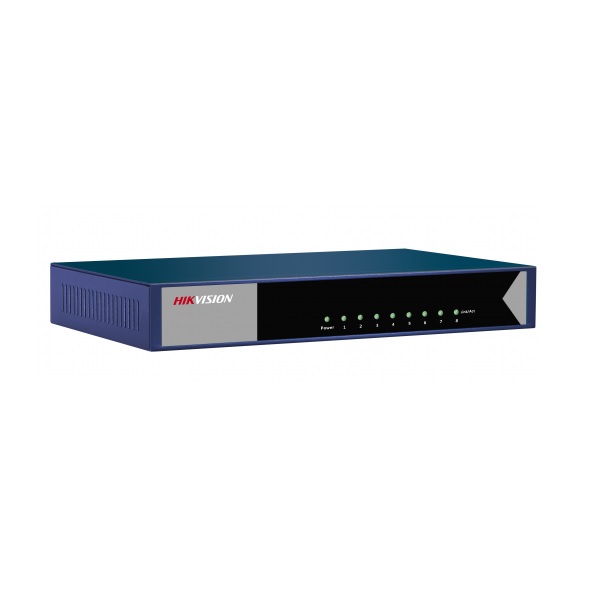 Hikvision DS-3E0508-E - неуправляемый сетевой коммутатор 8 RJ45 1000M (8й-Uplink порт). Таблица MAC адресов на 4000 записей. Пропускная способность 16Гб/с; AC100-240В, 0.3A. Рабочие условия 0 °C...+40°C.