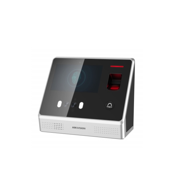 Hikvision DS-K1T605MF-B - терминал доступа с распознаванием лиц, встроенным считывателем Mifare карт и считывателем отпечатков. 5" цветной TFT LCD экран с разрешением 800x600; хранилище: 100000 событий, 2000 лиц; 5000 карт; 5000 отпечатков; uplink интерфейсы: TCP/IP, WIFI; 1 USB; Питание DC12В; 24Вт. Встроенная литиевая батарея. Рабочие условия -15 °C...+50°C. Размер 190x157x98мм. Пластик.