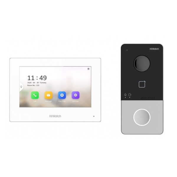 Комплект IP-видеодомофонии для небольшого офиса и частного дома. Серебристо-черная вызывная панель DS-D100IPF и внутренний монитор в элегантном белом корпусе DS-D100IMWF. Устройства поддерживают электропитание от блока питания и по технологии PoE, поэтому в комплект поставки входит два БП DC 12В. Комплект DS-D100IKWF поддерживает дистанционное управление через мобильное приложение Hik-Connect. Владелец может со смартфона открыть замок, посмотреть записи с камеры, поговорить с посетителем. Еще одна интересная особенность готового решения от HiWatch –возможность проводного и беспроводного подключения к интернету. Панель вызова и монитор из комплекта DS-D100IKWF поддерживают стандарты Wi-Fi 802.11b/g/n и 10/100 M Ethernet.