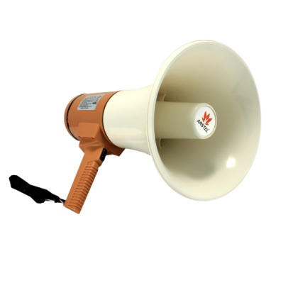 Мегафон ручной со встроенным микрофоном предназначен для организации мобильной громкоговорящей связи на открытых территориях, в помещениях с высоким уровнем шума, речевого оповещения в чрезвычайных ситуациях и спасательных работах. Максимальная мощность 25 Вт, номинальная мощность 15 Вт, напряжение питания 9 В.