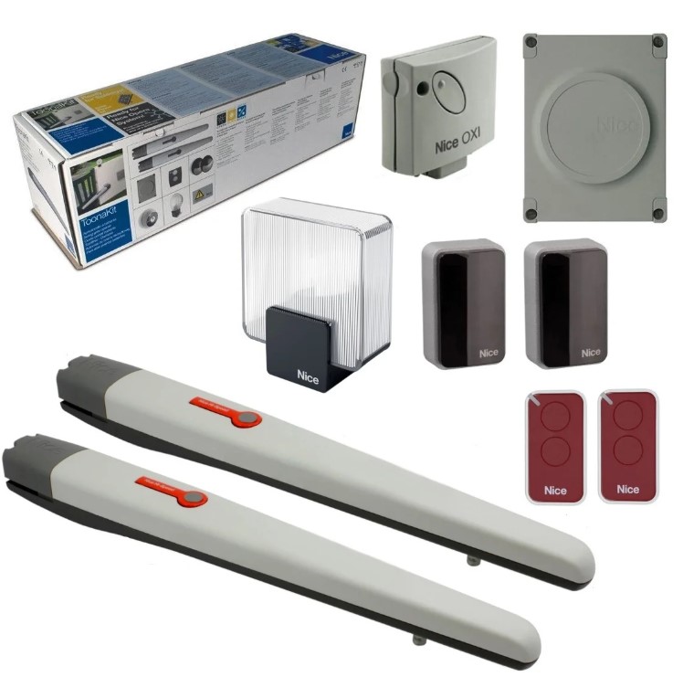 Комплект для распашных ворот TO6024HSBDKIT2. Состав комплекта: Привод TO6024HS - 2 шт, блок управления МС824H - 1 шт, приемник Oxibd - 1 шт, фотоэлементы Epmb - 1 пара, лампа Eldc - 1шт, пульт ON3EBD - 1 шт.