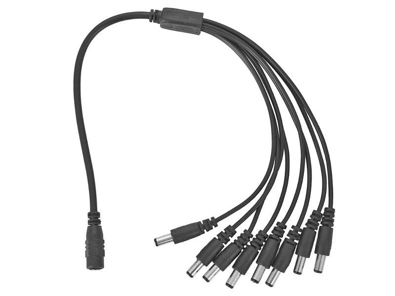 Соединительный кабель для разветвления линии питания (1 гнездо DC на 8 штекеров DC), позволяет подключить к одному блоку питания несколько камер или микрофонов. Материал изготовления кабеля - ABS пластик, силикон, медь.
