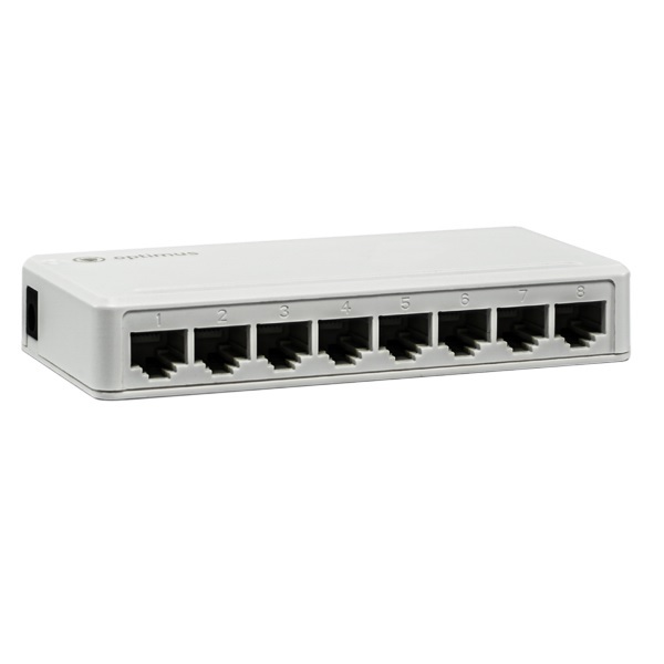 8 портов 10/100/1000 Мбит/с RJ-45, Внешний источник питания AC/DC Вход: 100-240В, 50/60Гц, Выход: 5-12В 0.3А, 126x63x21 мм.