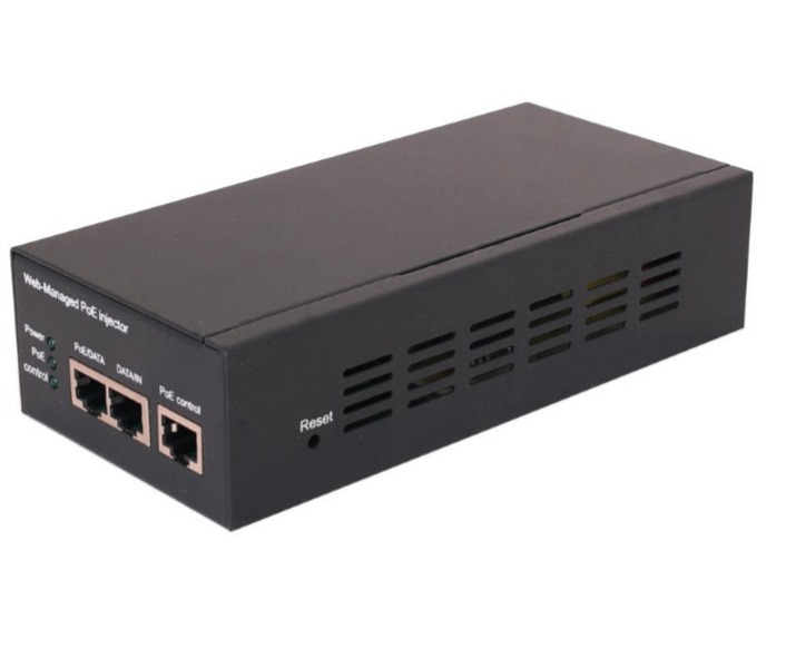 Управляемый PoE-инжектор Gigabit Ethernet на 1 порт. Соответствует стандартам PoE IEEE 802.3af/at. Автоматическое определение PoE устройств. Мощность PoE на порт - до 30W. Суммарная мощность PoE - до 30W. Вх. - 1 x RJ45 (10/100/1000 Base-T), вых. - 1 x RJ45(10/100/1000 Base-T, PoE, IEEE 802.3af/at), 1 x RJ45 Порт управления. Web интерфейс. Питание: AC100-240V. Встроенный БП. Размеры(ШхВхГ): 83x44x172мм. Рабочая температура: -10...+45 гр. C