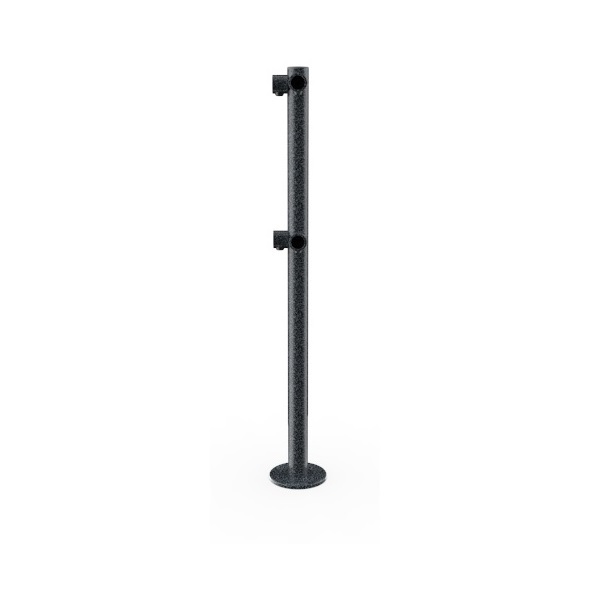 Стационарная двухуровневая односторонняя усиленная стойка ограждения высотой 1000 мм. С двумя муфтами для горизонтальных перемычек диаметром 32 мм и д...