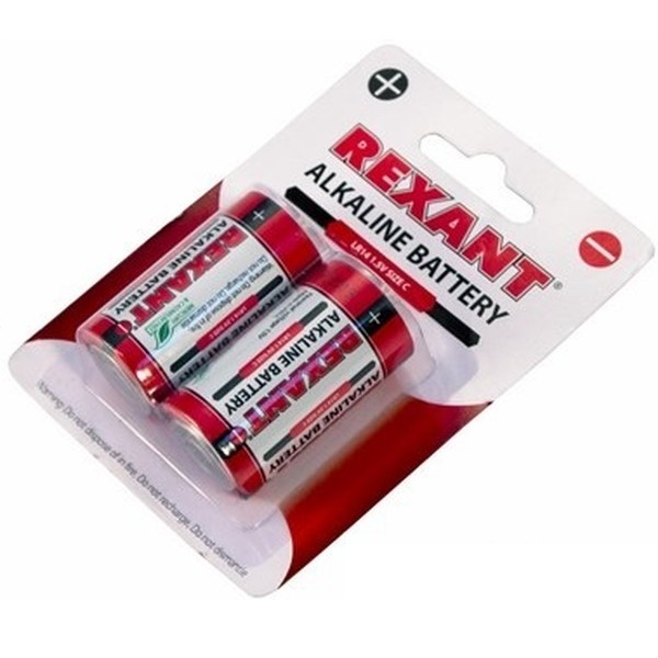 Алкалиновые батарейки С/LR14 "REXANT" 2 шт 1,5 V 8000 mAh блистер.
