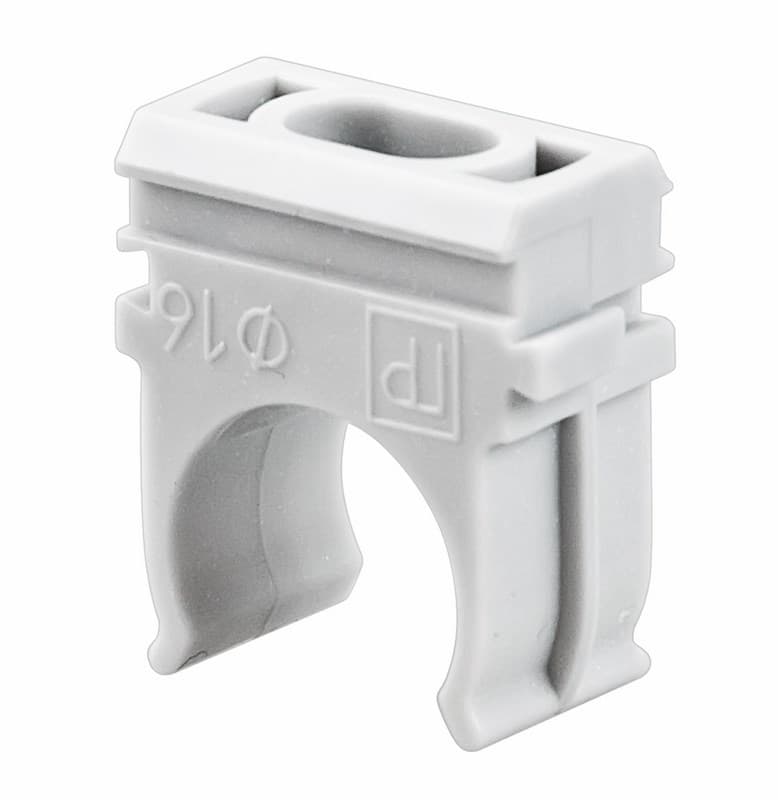 Крепление для труб ПВХ с защелкой D = 25 мм. Цвет - серый RAL 7035. Количество в упаковке 100 шт.