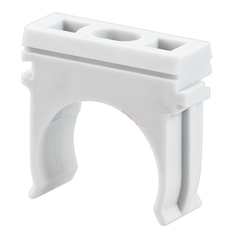 Крепление для труб ПВХ с защелкой D = 16 мм. Цвет - серый RAL 7035. Количество в упаковке 100 шт.