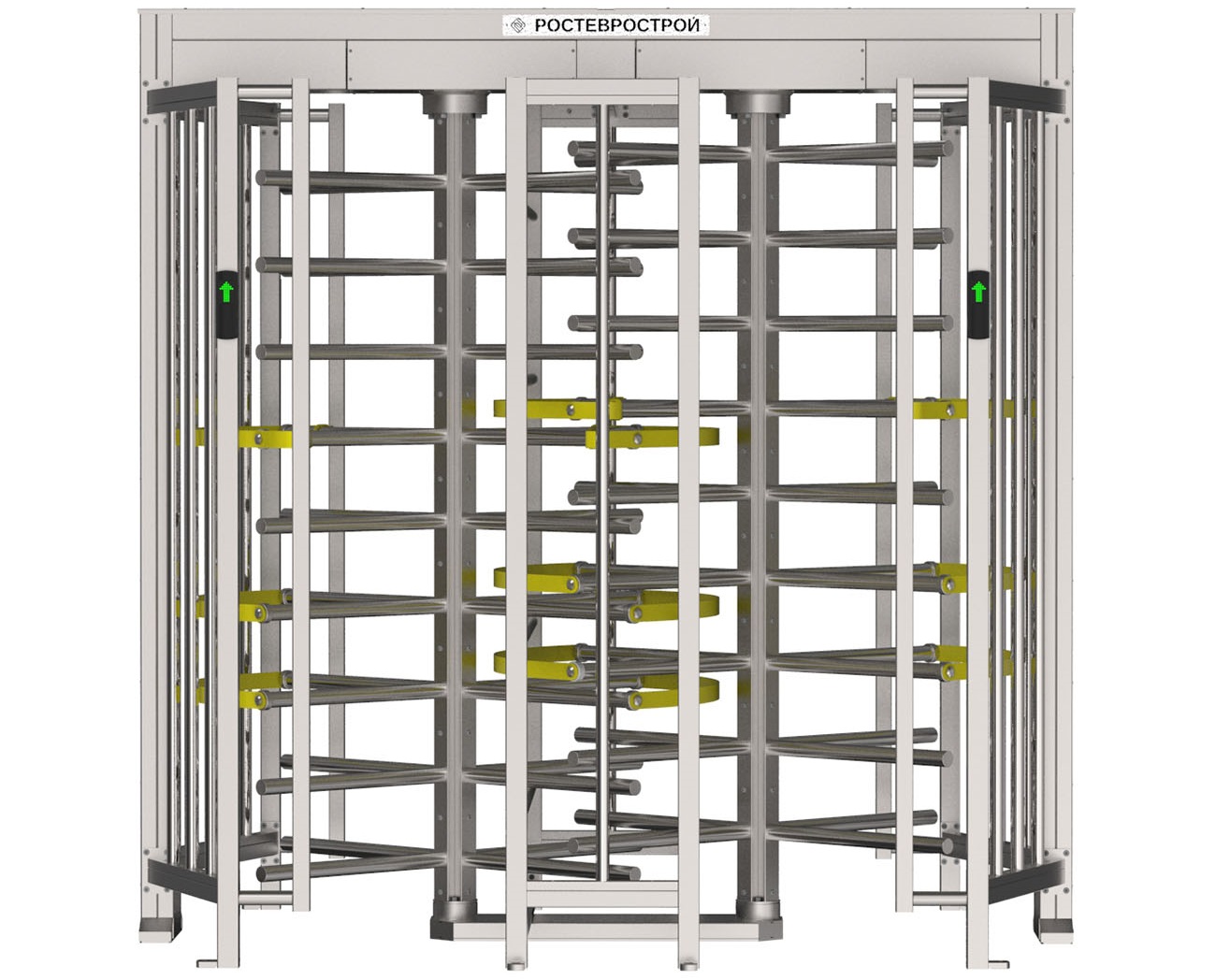Двухпроходный автоматический полноростовый турникет с корпусом, ротором и преградами из оцинкованной окрашенной стали. Три сектора по 120 град. или че...