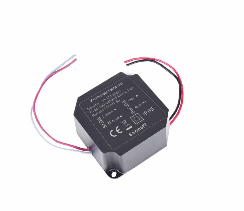 Источник вторичного электропитания 12В, 2А в корпусе IP67 (всепогодный) для скрытой установки в короба, распределительные коробки, сетевой шнур с вилк...