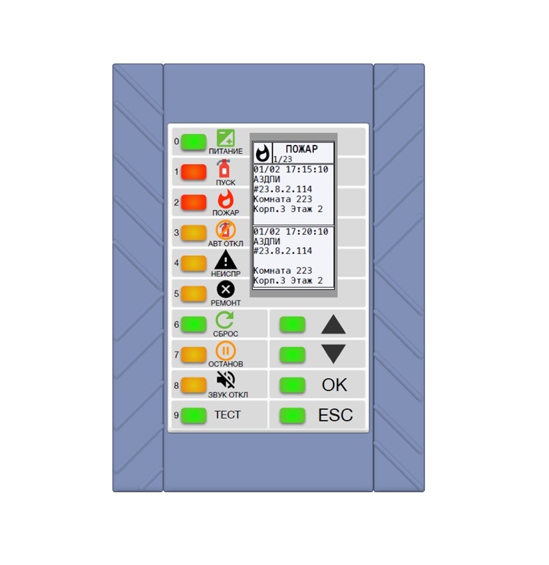 Прибор приемно-контрольный, без дисплея, без контроллера адресного шлейфа, подключение до 127 контроллеров КА2 по RS-485, SD-карта для хранения журнал...
