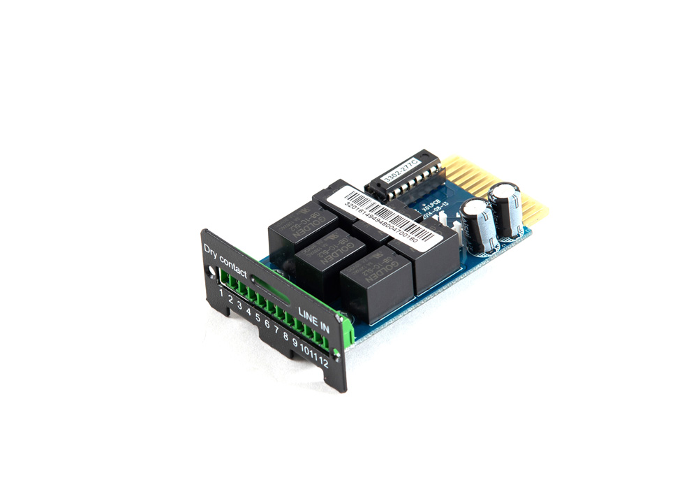 Релейный модуль для SKAT UPS 1000 Rack и SKAT UPS 3000 Rack. Модуль преобразует внутренние сигналы ИБП в формат «сухой контакт реле», обеспечивает возможность дистанционного отключения ИБП и внешнего мониторинга состояния электросети и ИБП по шести основным параметрам. Тип контактов - клеммная колодка. Количество клемм - 12.