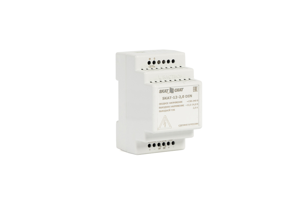 Источник вторичного электропитания. 12В 2А пластиковый корпус под DIN рейку 35 мм Внешний АКБ от 7Ач. Защита от КЗ в нагрузке, защита АКБ от глубокого разряда и переполюсовки. Размер — 53х88х71 мм