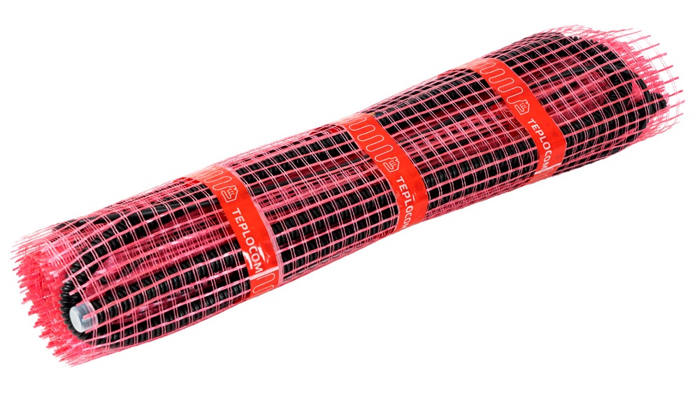 Элетрический теплый пол на основе тонкого двужильного кабеля на стеклосетке. Обогреваемая площадь 9 кв. м. Удельная мощность 160 Вм/м2. Трубка для тер...