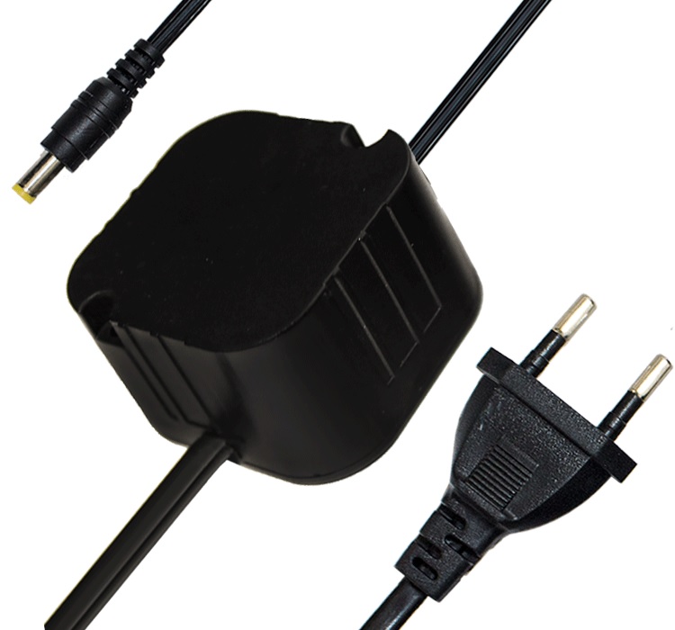 Источник вторичного электропитания 12В, 1.5А в корпусе IP54 для скрытой установки в короба, распределительные коробки, сетевой шнур с вилкой, 43×45×27 мм.