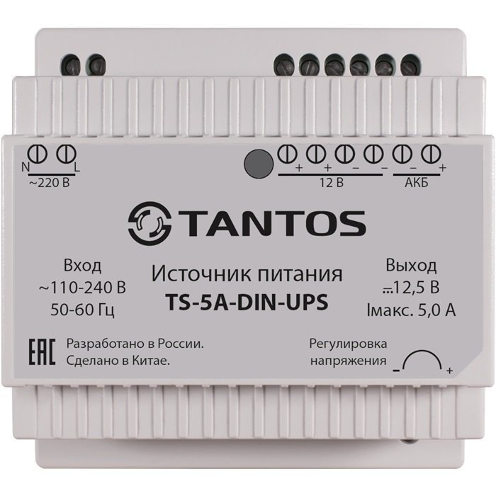 Источник вторичного питания на DIN-рейку резервированный 12В, 5А под внешний АКБ 12В 4, 7 или 12А·ч. Защита от глубокого разряда аккумулятора. Защита от короткого замыкания нагрузки, перегрузки по напряжению и току, регулировка выходного напряжения (11.2 - 14.2 В).